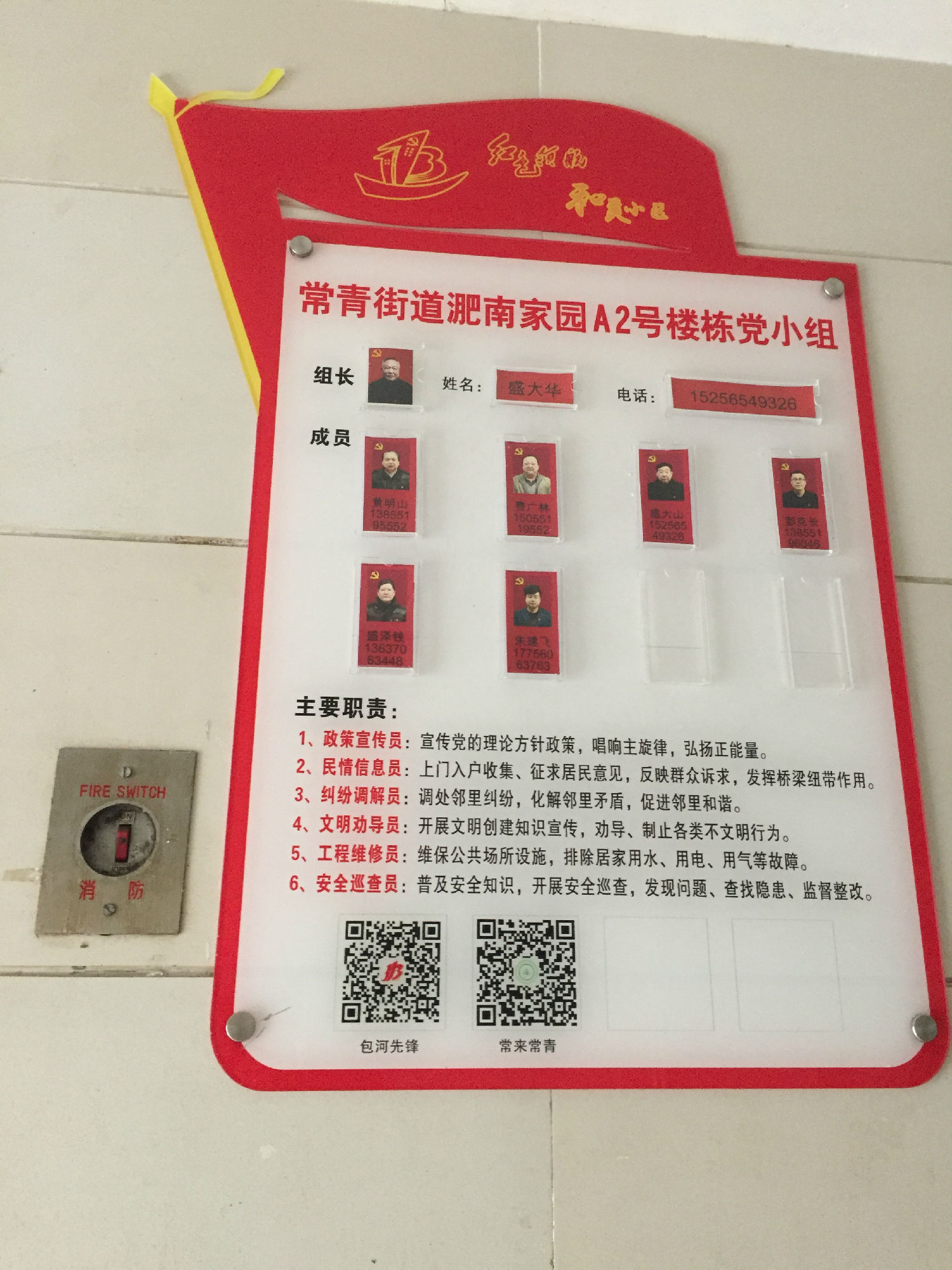 為認真貫徹落實安徽省委印發的《關于加強基層黨建工作意見》和合肥市委印發的《關于加強新時代城市基層黨建完善基層治理工作的意見》等文件精神,包河區開展了“紅色領航和美小區建設”。作為常青街道試點小區,淝南家園以“紅管家”服務驛站為活動載體,先后開展“制度建設”“組織框架”等軟件措施,同時增設了“紅管家宣傳欄”“樓棟黨小組告示牌”等硬件設施。本次照片上墻就是完善“樓棟黨小組告示牌”工作。