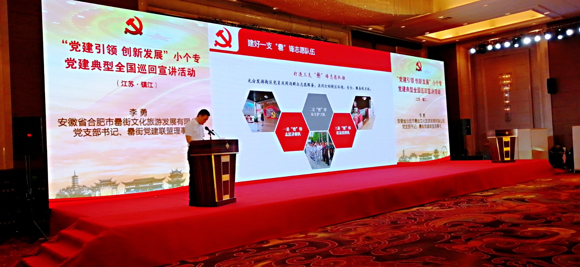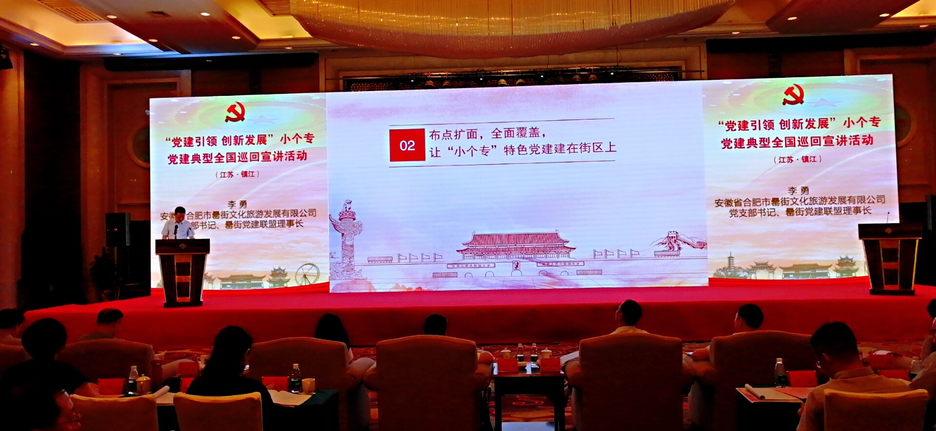 近日,合肥罍街作為安徽省唯一代表參加在江蘇鎮江舉辦的“黨建引領 創新發展”小個專黨建典型全國巡回宣講活動,合肥罍街文化旅游發展有限公司黨支部書記李勇宣講“紅動罍街”創建小個專黨建示范街區工作經驗。“紅動罍街”黨建品牌作為先進典型,首次走出安徽,邁向全國,“到合肥必到罍街”的口號響徹會場。