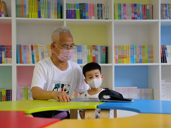 “要不要分享冰淇淋?”還未完全走進陽光閱讀區(qū),就聽到孩子清脆的聲音,那是金寨南路社區(qū)睦鄰老書記伍先舉和他的孫子,可愛的小朋友正拿著繪本認真的給爺爺講故事。爺爺說,小朋友特別喜歡這里,以后無論是夏日還是寒冬就不用大老遠帶著孩子跑去書店閱讀了。家門口的“轉(zhuǎn)角時光”不僅方便了居民,更成為親子教育的優(yōu)質(zhì)課堂。