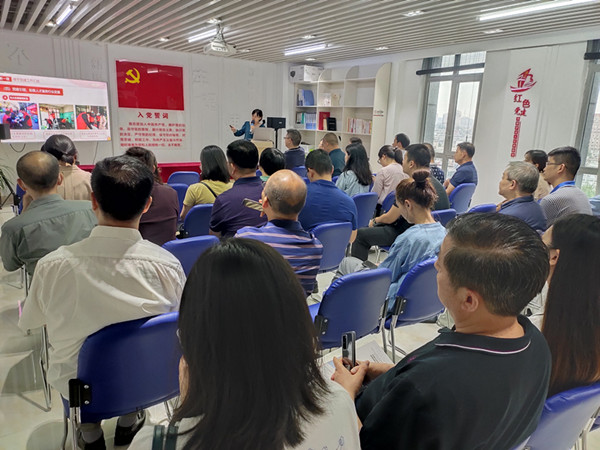 調研中,非公和社會組織黨組織書記們參觀了黨建紅色長廊,“不忘初心、牢記使命”主題教育墻,觀看了“心驛富廣”黨群服務站宣傳短片,聽取了富廣大廈富德生命人壽安徽分公司黨支部的特色黨建工作匯報。“心驛富廣”黨群服務站的工作人員還介紹了黨群服務站自建成以來一年多的黨建工作推進情況、未來面臨的問題和挑戰及下一步工作規劃。之后,大家就黨建工作好的經驗做法、黨組織和黨員發揮作用的途徑及黨建助力經濟發展等突出問題進行交流探討。