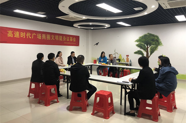 高潮動(dòng)作“議”——社居齊聚,議事協(xié)調(diào)。包河區(qū)煙墩街道西杭社區(qū)黨支部根據(jù)廣場(chǎng)舞隊(duì)伍信息登記表,把領(lǐng)隊(duì)們請(qǐng)進(jìn)社區(qū)活動(dòng)室,開展高速商圈文明健身議事會(huì)。在聊民心、順民意的基礎(chǔ)上,雙方達(dá)成共識(shí),領(lǐng)隊(duì)們簽訂“高速時(shí)代廣場(chǎng)商圈文明健身公約”,以實(shí)際行動(dòng)履行“文明健身,營造和諧氛圍”的約定。此外,包河區(qū)煙墩街道西杭社區(qū)黨支部聯(lián)合高速商圈物業(yè)分別在廣場(chǎng)南、北兩側(cè)樹立文明健身公約牌,接受社會(huì)大眾和轄區(qū)居民的監(jiān)督。