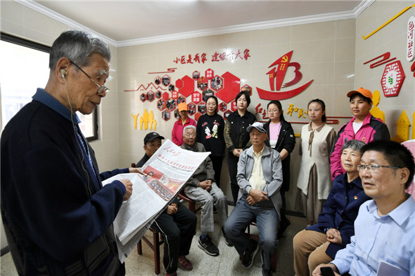 在糧食局A棟一單元,全國理論宣講個人楊澤田書記正在帶領(lǐng)著樓棟黨員居民骨干、樓棟長以及熱心居民,認真學習領(lǐng)會黨的十九屆四中全會精神。楊老用通俗易懂、最接地氣的語言把中國共產(chǎn)黨不忘初心、牢記使命的宗旨理念和為實現(xiàn)中華民族偉大復(fù)興的中國夢不懈奮斗的決心,傳遞給黨員群眾,并用他們喜聞樂見的方式深刻闡釋了黨的十九屆四中全會精神,讓老百姓聽得懂、能領(lǐng)會,可落實。