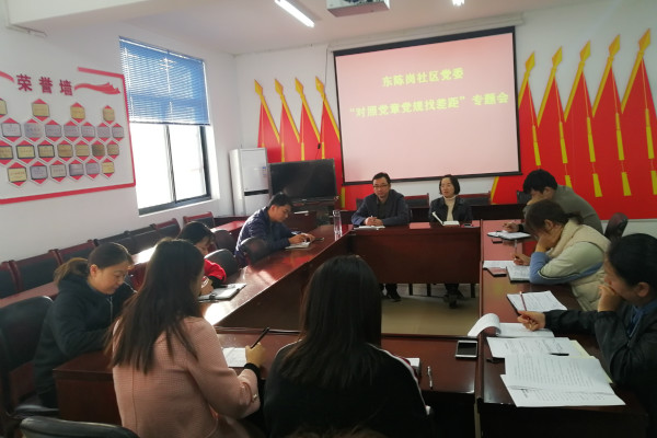 近日,東陳崗社區(qū)黨委按照“不忘初心、牢記使命”主題教育的要求, 組織全體工作人員及黨員在社區(qū)會(huì)議室召開對照黨章黨規(guī)找差距專題會(huì)。會(huì)上,與會(huì)人員逐一發(fā)言,他們對照黨章黨規(guī),結(jié)合實(shí)際工作情況,查找自己存在的問題,對問題產(chǎn)生的原因進(jìn)行深刻的剖析,并提出了整改措施。