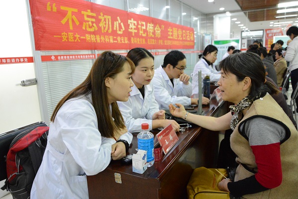 針對居民就診難題,云華社區積極鏈接醫療資源,通過支部共建方式,以黨建共建凝聚更多力量參與社區治理,定期將健康診療、健康宣教服務送到居民身邊。聯合安醫大一附院外科、骨科等黨支部開展“不忘初心 牢記使命”大型義診活動,由胃腸外科、乳腺外科、骨科專家等組成的義診團在居民家門口廣大群眾提供優質健康義診服務,講解各種常見病、多發病的預防知識和注意事項并針對不同病癥和個體差異提出診療建議。云華社區黨支部與共建單位市婦聯機關黨總支多次開展“送講座、送健康”進社區活動,與濱湖醫院、美康體檢中心在母親節、教師節、重陽節等節日節點開展眼科、乳腺科等專業義診及健康檢查服務。2019年以來開展義診活動30多場次,受益居民500多人次。居民尹阿姨高興地說:“以前去醫院看個專家要排很久的隊,對于我們老年人來說真的不容易,現在大醫院專家來,在家門口就能享受專家的服務,真是太好了!”