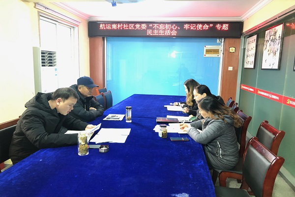 為深入開展“不忘初心、牢記使命”主題教育,根據街道黨工委統一要求,近日,航運南村社區黨委召開“不忘初心、牢記使命”專題民主生活會。社區黨委全體成員參加,會議由社區黨委書記主持,包公街道黨工委委員王主任參會指導。