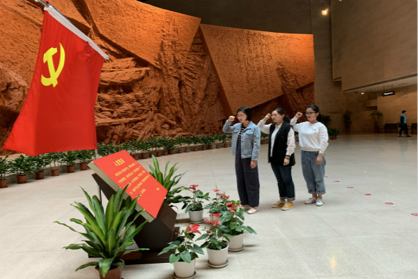 一路上,黨員們通過傳唱紅歌的方式來抒發自己對黨的熱愛之情。到達渡江戰役紀念館,一件件珍貴的文物再現了戰火紛飛的年代。通過參觀,黨員們被人民軍隊的大無畏精神深深觸動,懷著悲壯的心情在軍功墻前默哀三分鐘,表達對烈士們崇高的敬意。