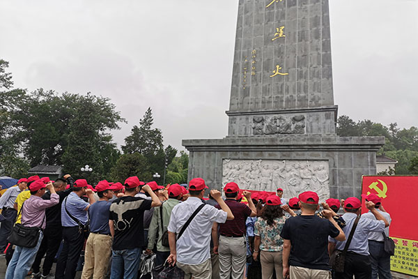 經過3小時車程,早上到達金寨的紅軍廣場后,黨員們便站在革命烈士紀念塔前重溫入黨宣誓,再次接受了一次深刻的革命傳統教育和黨性洗禮。隨后,大家參觀革命烈士陵園,近距離、直觀地了解了革命先烈的歷史歷程與光榮事跡。在場的黨員深刻感受到革命志士的大無畏精神,歲數大的老同志們回憶起艱苦往昔,年輕的黨員們體會到今天幸福生活來之不易。