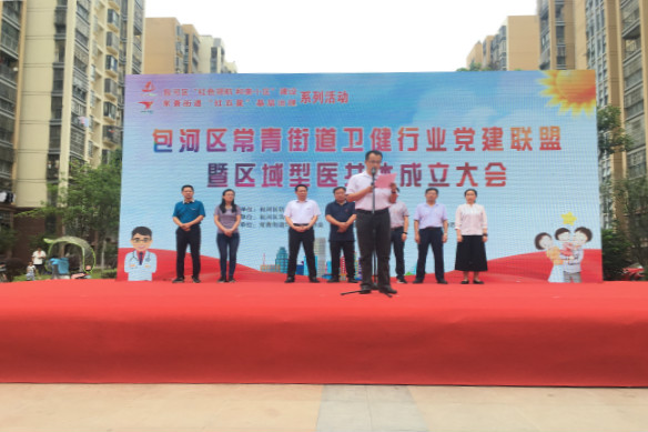 6月30日上午,包河區常青街道在轄區紫竹苑小區南廣場舉行衛健行業黨建聯盟暨區域型醫共體成立大會,在全區率先成立“包河區常青街道衛健行業黨建聯盟”和“包河區常青街道區域型醫共體”。