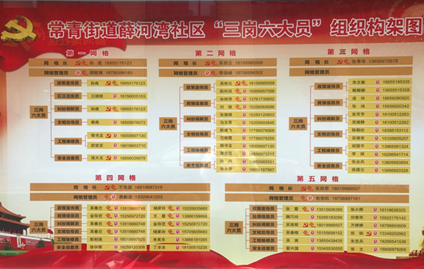 為了實現“陌生人社區”轉變為“新熟人社區”這一目標,社區根據《常青街道“紅五星”基層治理模式的實施意見》,采取“1+2+N”的模式,將社區劃分為5個基礎網格,以黨組織為依托,由班子成員擔任網格長,每個網格配備2名網格員。同時,統籌區域內黨員、樓棟長、居民積極分子、物業管理、駐地單位、企業商戶等資源,組成“三崗六大員”(“三崗”指黨員先鋒崗、居民鄉賢崗、社團志愿崗,“六大員”指政策宣傳員、民情信息員、糾紛調解員、文明勸導員、工程維修員、安全巡查員),使其成為社區居民自治的基礎與核心。