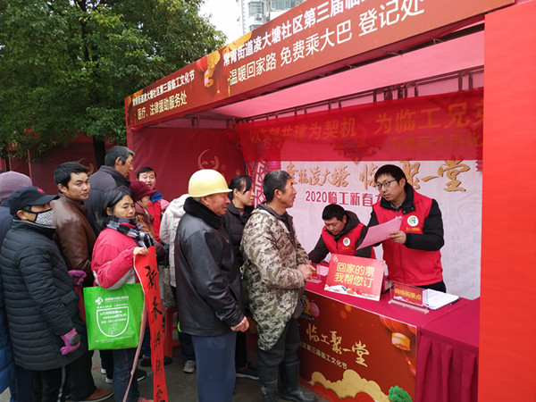 此外,在活動(dòng)外場(chǎng),“匠之心”志愿服務(wù)隊(duì)的青年志愿者為現(xiàn)場(chǎng)臨工送來(lái)了民生關(guān)懷服務(wù),不僅有健康醫(yī)療、法律援助、崗位咨詢等民生幫扶,還有送春聯(lián)、代購(gòu)火車票、非遺年俗展示、大巴返鄉(xiāng)登記、積分兌換等諸多服務(wù),溫暖了廣大臨工的心,深受臨工的歡迎。