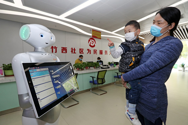 “你們好,這里就是我們的竹西社區新時代文明實踐站,現在我們所在的區域是為民服務大廳,有什么需要都可以來辦理。”機器人“竹小西”邁著輕快的步伐在各個區域穿梭,“紅·五星”社區治理學院、居家養老中心、殘疾人康復室、健康促進教育基地……