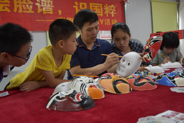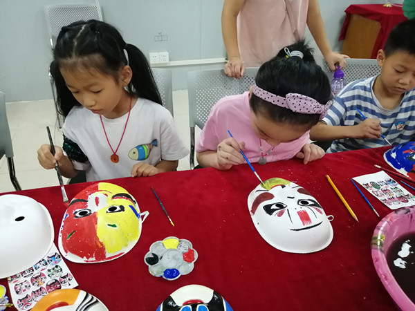 活動中,省內非遺專家朱老師首先向小候鳥們詳細介紹了京劇的起源、基本常識、發展以及在國內國際的影響,并闡釋保護非遺的意義,讓孩子們了解臉譜的構圖、色彩的運用、勾畫的臉譜技巧等等。隨后大家開始動手畫臉譜,孩子們一個個躍躍欲試,充滿期待,在老師的指導下,將臉譜與自己的創意結合,有的畫的是包公,有的畫的是關羽,有的在臉譜上加了星星,有的在臉譜上畫了祥云,經過用心努力描繪,一張張京劇臉譜在孩子們手中產生了,大家愛不釋手,互相交流手繪的作品,雖說是第一次手工繪畫,但個個有模有樣呢。
