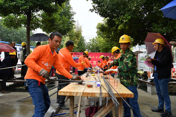 賽前,選手們觀摩了合肥市2019年創新競賽“合肥市金牌職工”的獲得者臨工張幫群、祝尊化等人的頒獎儀式,并聆聽了“合肥市金牌職工”的獲獎感言。選手們個個精神飽滿,帶著能獲獎的精氣神走進賽區。此次比賽按照工種分為鋼筋工賽區、砌筑工賽區兩大類別。經前期培訓和理論考試,最終從230多名選手中篩選出砌筑工、鋼筋工各前20名進入當天的決賽。現場,砌筑工師傅們“舞弄著”手中的磚塊,爭分奪秒完成作品。鋼筋工師傅們拿到考題,首先開始腦力勞動——算料,寫寫畫畫之后,大家都胸有成竹地進入了下面的環節,放樣、下料、綁扎……一絲不茍地按標準化施工流程耐心操作。一時間,比賽現場男女同臺競技,一片熱火朝天的景象。經過五個多小時的角逐,經裁判評定,綜合筆試成績,產生了砌筑工、鋼筋工一等獎各一名,二等各一名,三等獎各一名,鼓勵獎各五名,并頒發了榮譽證書和獎品。