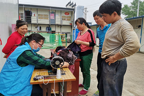 為了能讓民工感受到家的溫暖,志愿服務隊為工地送體檢、理發、衣物修補等多項免費服務項目。吳愛菊介紹說,社區志愿者通過實地了解民工的需求,為其提供“私人訂制”服務,并將每個月的15日定為民工服務日。除此之外,社區還將適時推出觀影、趣味運動會等系列服務活動。油坊崗社區依托回遷復建點的家園建設和民工服務工作,推出的“3+X”特色網格志愿服務,實現了“小網格”服務“大民生”。