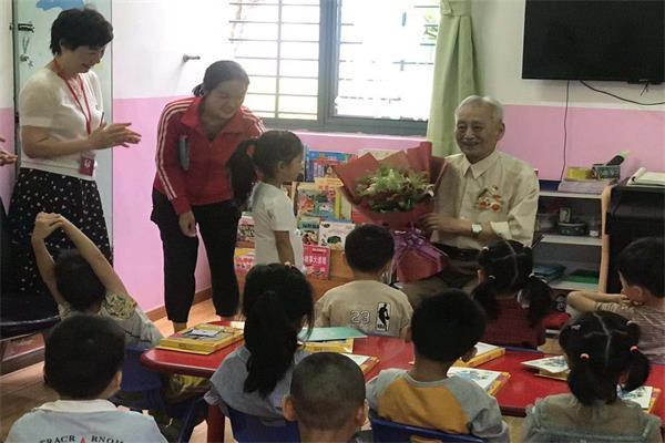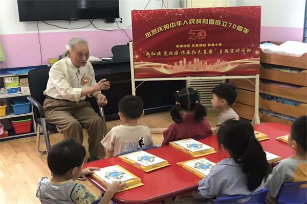 本次活動邀請了和美小區恒生陽光城的退休老黨員、離休干部李明欽同志為孩子們講述了他的個人紅色傳奇故事和典型事跡,一個個鮮活的紅色故事吸引著幼兒園大班的孩子們,他們聚精會神地聽著,仿佛置身于當時的紅色場景中。故事結束后,孩子們意猶未盡,熱烈的掌聲響徹課堂,經久不息,隨后,黨員代表又為孩子們講述了國旗背后的故事,引導孩子們體會國旗所蘊含的意義,鼓勵孩子們用手中的畫筆繪制出鮮艷的國旗,在他們的心靈上種下了愛國愛黨的種子。繪畫結束后,學生代表為李明欽同志送上鮮花,并合影共唱《沒有共產黨就沒有新中國》,營造了濃厚的愛國氛圍。最后,社區志愿者和小朋友們一起分享了《健康素養66條》,引導小朋友從小養成愛洗手、講衛生的好習慣,并以此帶動整個家庭提高健康素養,增加居民幸福感、滿意度。