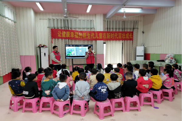 在望江馨苑幼兒園里,黨員們以“我和我的祖國”為主題,以我國電力系統70年里的發展為開場,結合自身工作的實際故事,對小朋友們進行了生動的愛國主義教育。并結合平時生活中的小例子,以提問的形式和小朋友們進行了互動。小朋友們開動腦筋,踴躍回答電力安全小知識的相關問題,氣氛熱烈。
