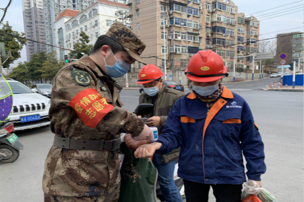 路邊的風是冷的,可民兵的心是熱的,目前,蕪湖路街道曙光社區召集了8位退伍士兵,積極投身到防疫一線,分布在合肥南站,以及曙光社區下轄的江南新里程、曙宏南苑、曙宏新村、旭景家園小區,民兵們穿著迷彩服為路邊增添了一道最美的迷彩防線,盡顯了民兵退伍不褪色的責任與擔當。