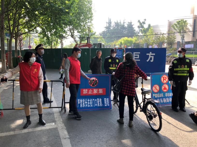 26日早晨,蘭亭社區新時代文明實踐站的志愿者和城管隊員早早來到屯溪路小學周邊主路口,與學校工作人員一同在曙光路屯溪路至績溪路段全線站崗維持秩序,保證家長不靠近校園,行人不在校園周邊逗留,學生間隔一米以上步行入校,有序排隊消毒、測溫等。在大家的共同努力下,屯溪路小學復學工作穩定有序,圓滿成功,獲得了廣大師生的一致好評。