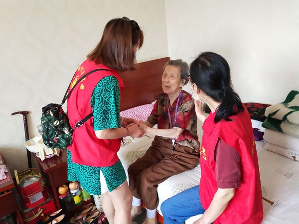 2020年6月4日,蕪湖路街道蘭亭社區(qū)關(guān)工委組織退管工作人員、志愿者前往肥西悠南山養(yǎng)老院,看望97歲高齡的五老人員謝奶奶,并為謝奶奶進(jìn)行退休認(rèn)證工作。謝奶奶戶(hù)口在藥監(jiān)局宿舍,是蘭亭社區(qū)企退人員,原上海下放知青,老人一生無(wú)兒無(wú)女,老伴前兩年也去世了,沒(méi)有人照顧,居住在養(yǎng)老院,行動(dòng)也不方便,志愿者們?yōu)橹x奶奶送去米油等慰問(wèn)品,陪她聊天解悶,講社區(qū)新鮮事,送上組織的關(guān)心。謝奶奶看到來(lái)探望的社區(qū)志愿者很感動(dòng),拉著志愿者的手哽咽的說(shuō)她的親人只剩社區(qū)人員了,非常感謝黨和組織還惦記著她。