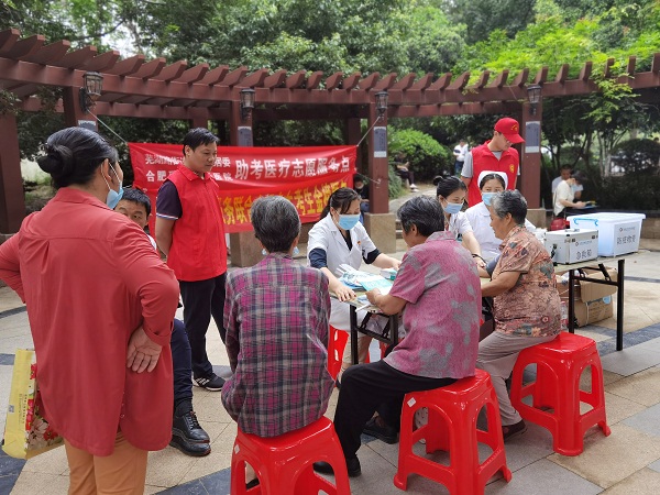 7月14日早晨7點,包河區志愿聯合會、蘭亭社區合肥瑞金肛腸醫院黨支部在合肥二中考點外的志愿服務廣場設置醫療助考點,和美醫療志愿者們準備了扇子、血壓測量、現場問診等服務,還有常用的防署降溫藥,如藿香正氣水、風油精等,以方便候考家長隨時取用,得到了周圍家長們的熱情點贊。助考點的志愿者們將陪伴家長和考生們共同戰斗到中考結束最后一刻。