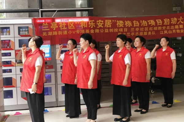 二是用項目助推。近日,蘭亭社區舉辦了“和樂安居”樓棟自治項目啟動大會,數十名黨員、志愿者、群眾熱情參與。“和樂安居”樓棟自治項目,是蕪湖路街道第二屆“小V專項基金”微公益創投項目之一,由蘭亭社區紅細胞黨員志愿服務隊承辦,旨在通過開展各項社區志愿服務活動,為社區居民排憂解難,積極促進紅色領航和美小區建設。項目啟動大會上,社區代表、物業代表、居民代表及項目督導等就項目運行依次發言,提出建設性意見,志愿者們進行了現場宣誓。大會最后,全體人員合唱《我和我的祖國》,表明志愿服務態度,展示助推“紅色領航 和美小區”建設的信心和決心。黨員、志愿者們的滿腔熱忱也感染了在場居民,好幾位居民現場登記成為“和樂安居”樓棟自治項目志愿者。“這個項目是為了將我們自己的家園建設得更好,這需要大家的共同努力。今天我報名當志愿者,也是盡自己的一份心力服務大家!”家住蘭亭公寓的王先生說。