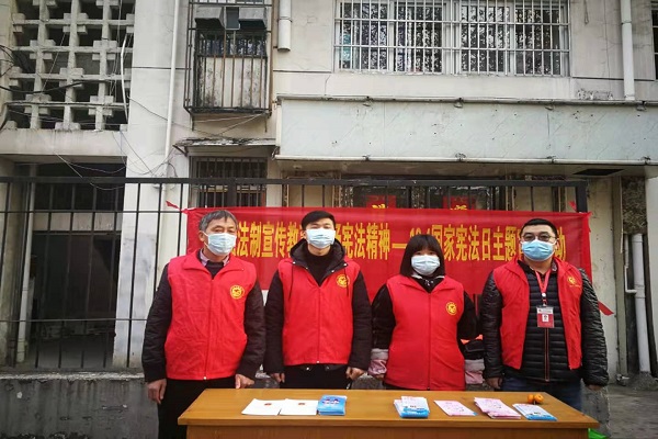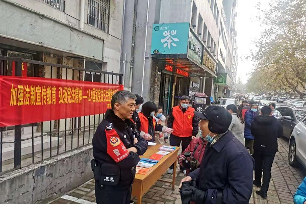 活動中,社區黨員志愿者和蕪湖路派出所民警現場對轄區居民講解了“12.4”國家憲法日的由來和《憲法》的相關知識,發放憲法宣傳臺歷10份;發放《安徽省多元化解糾紛促進條例》《防范電信詐騙手冊》《中華人民共和國反家庭暴力法》等宣傳資料130余份;并通過向轄區居民列舉發生在居民生活中的法律案例,增強他們的法律意識,引導他們在任何時候都要依法辦事,以理性、合法的形式表達利益訴求,堅定守法信念,營造社區法治氛圍。