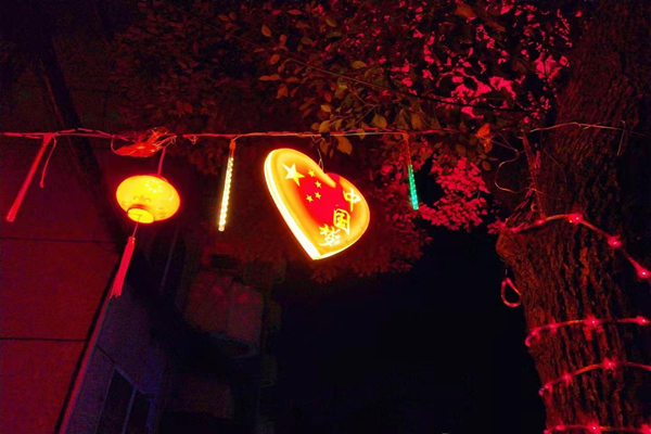 走進曙宏新村小區后,映入眼簾的是五光十色的活動廣場,在廣場的北側,綠油油的草坪上赫然佇立著“和美曙光”四個大字,為小區增添著和諧與美好的氛圍,停下腳步,駐足觀察這些霓虹燈,形狀各異,有條形、愛心、燈籠等樣式,一名抱著孩子的居民用手指在愛心燈牌前,慢慢地讀上面文字給孩子聽,“中國夢”、“不忘初心,牢記使命”,另一邊居住在曙宏新村的闞女士喜悅地說道:“今年我們一家人留在異地過元宵節,看到這么好看的夜景,讓我們也感受到了家的溫暖。”