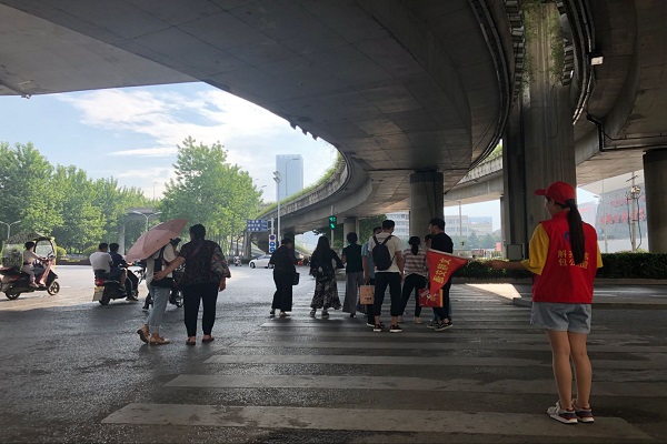 活動中,社區(qū)黨員志愿者們來到人流量、車流量大的馬鞍山路與南一環(huán)路交口,向過往行人進行宣傳,引導教育大家禮讓斑馬線,帶動市民提升文明交通理念,遵守交通規(guī)則,勇做城市的文明使者。