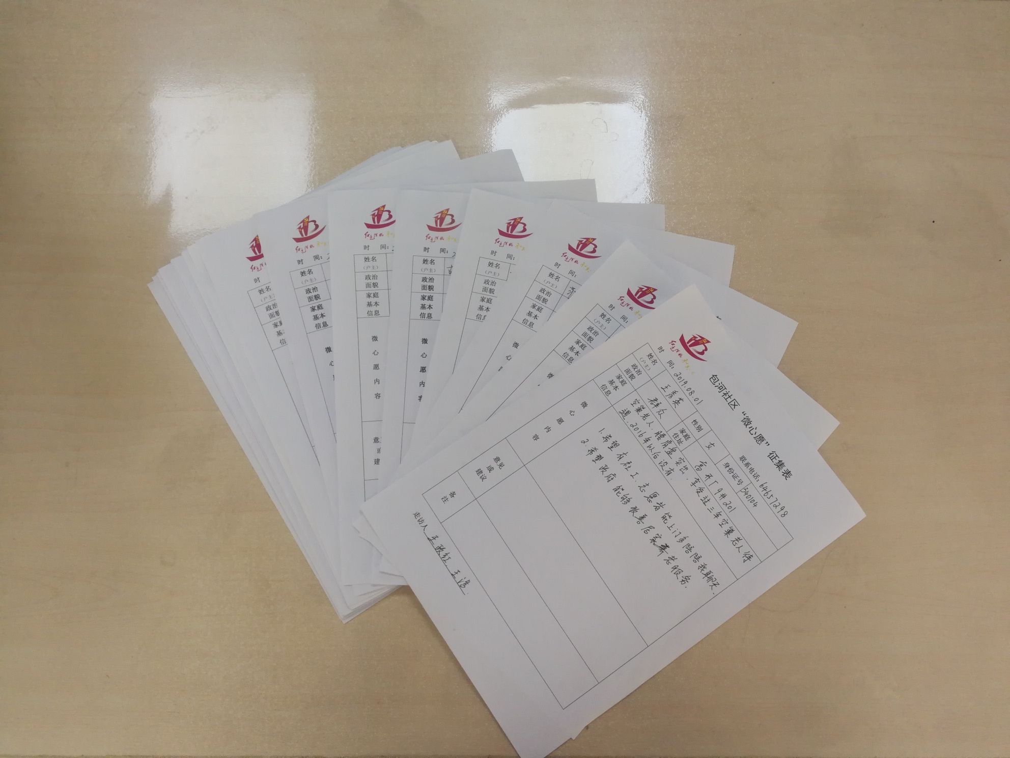 為做到知民情、取民意、集民智、解民憂,包河社區黨委通過協商議事會、“領頭雁”反饋、黨群家訪、微信群、居民意見箱等多種渠道征集居民“微心愿”。通過多方征集,社區共收集涵蓋精神慰藉、心理疏導、物資幫扶、公共環境維護、公共安全等不同類型的“微心愿”。社區“微心愿”登記表滿滿地記錄著300多個居民“微心愿”。今年以來,社區黨委聯合共建單位和社會力量幫助解決原高壓開關廠小區水管漏水、機動車占用消防通道、安裝健身器材、獨居老人精神空虛、兒童暑期看護等微心愿100多個。