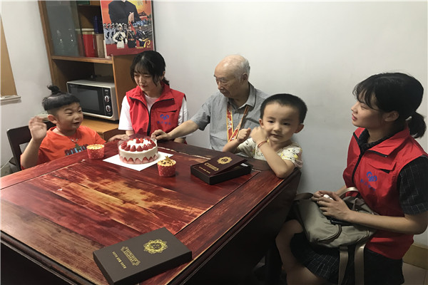 9月27日下午,社區小小志愿者手提蛋糕,開心地來到了轄區新四軍陳發祥老人的家中,聆聽老人的抗戰故事以及祖國的歷史。1928年出生的陳發祥老人,生來家境還算不錯,熱愛文學,奈何戰火紛飛,只能棄筆從戎。九一八事變后,陳老的父親便加入了中國共產黨,隨后陳老也加入抗日大軍中,成為一名新四軍,家人全部參軍,兄長還在淮海戰役中犧牲,即便如此,陳老依然不曾后悔參軍。聽完陳老的英勇事跡,小小志愿者激動地說道:“以后我也要像爺爺一樣當軍人,打壞人!要好好學習,報效祖國!”活動結束后,寧國新村社區黨委書記給老人戴上了彰顯榮譽的70周年紀念徽章。老人開心地說道:“這是我的榮譽,我一定要好好收藏!”