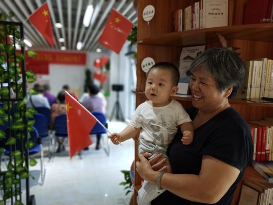 10月1日,包河區包公街道非公企業黨員在“心驛富廣”樓宇黨建服務站內觀看慶祝中華人民共和國成立70周年大會。
