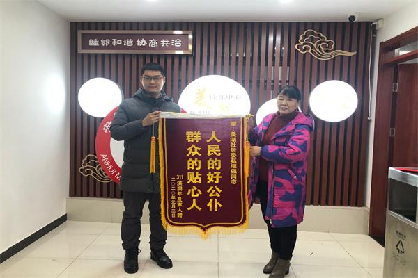 2020年1月9日下午,美湖社區來了幾位帶著感謝信和錦旗的居民,她們在風雪中冒雨而來是特意感謝美湖社區黨總支為他們解決了樓棟主管道銹蝕堵塞問題的。