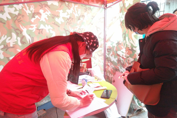 她每天和社區工作人員一起在小區門口值守,堅守對往返人員逐一登記量體溫、逐個排查,為居民無接觸代收快遞冒著被感染的危險,及時為隔離人員、困難群眾提供生活幫助。