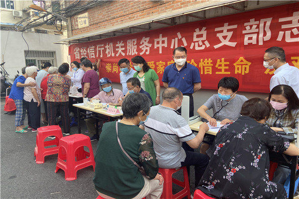 26日上午八點,志愿者們早早就來到了活動現場,搬桌椅,拿工具,做好活動準備,聞訊趕來的居民也是絡繹不絕。現場由社區以及省經信委的黨員志愿者為居民提供理發、測量血壓、血糖、家電維修、包粽子等服務。“我年紀大了,腿腳不是很好,每次出門理發都要走很遠的路,現在好了,社區每個月都開展這樣的活動,出門就能理發,真的是為人民謀福利啊!”居民曾奶奶開心地說道。