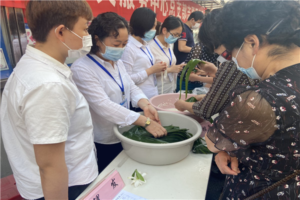 測量完血壓和理完發后,居民把包粽子的操作臺圍成一圈,一個個都躍躍欲試。在志愿者的指導下,居民們先把雙手消毒,然后拿出粽葉、放入餡料、兩面一捏、繩子一系,一個個精巧的小粽子就包好了。“粽子哪里都能買到,不過這可是我們自己包的愛心粽子啊!給老人家送去他們也更開心啊。”志愿者張女士說道。隨后,志愿者把包好的粽子送往轄區貧困老人家中。