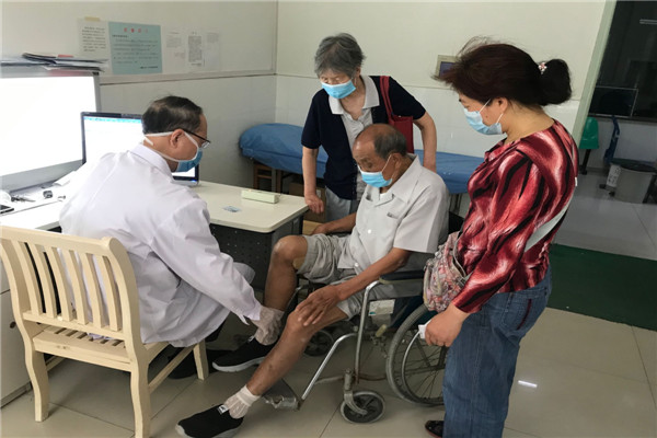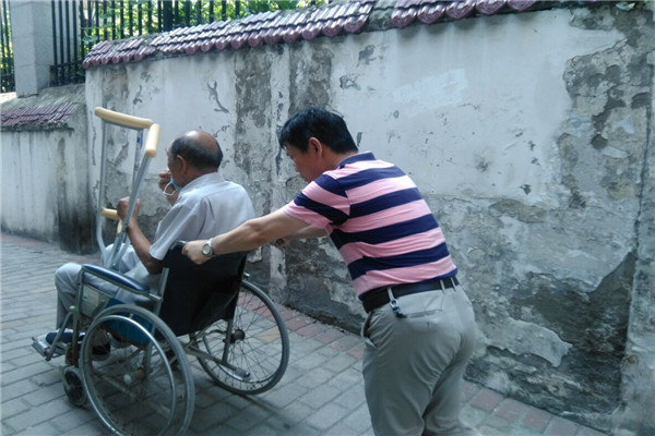陶老家住三樓,工作人員來(lái)到陶老家中后,先是攙扶著陶老下樓,緊接著把陶老的輪椅搬到樓下,推往離小區(qū)最近的安醫(yī)四附院。從掛號(hào)、就診到醫(yī)生開(kāi)藥,社區(qū)工作人員一直陪伴在陶老和老伴身邊,直到最后把老兩口平安送回家中。