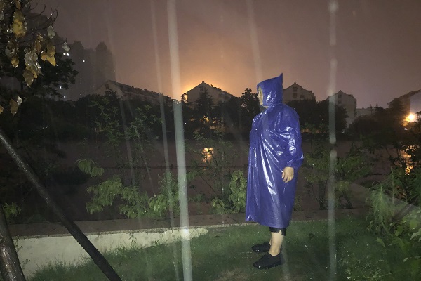民兵、城管隊員紛紛趕來支援,歷史級別的降雨量導致南淝河出現汛情,隨著水位的不斷升高,防汛形勢進一步嚴峻。南淝河老碼頭區域的親水公園因地勢較低,隨著水勢的上漲,河水已經從公園出口處漫上河岸,并且有沿著路面向上倒灌進居民生活區的危險,讓住在一樓的居民很是擔憂。航運南村社區派專人密切監控水情,疏散附近行人車輛,并協助民兵、城管隊員們搬運沙袋加固河堤工作,大雨將大家的衣服全部打濕,手被粗糙的沙子磨破,但沒有一個人停下手上的活,附近的居民說道:“看著堤壩建起來了,我們安心了,你們辛苦了!“