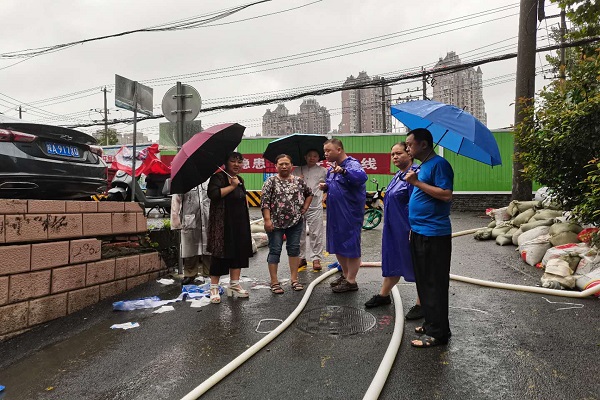 早已過了飯點,很多工作人員都沒顧上吃飯,居民們看到,紛紛從家里拿出零食,工作人員咽了兩塊餅干,繼續淌水再次核查一樓住戶是否全部撤離,并對樓上的住戶挨家挨戶敲門通知當前水位情況和供水供電情況,勸導他們撤離。好在,市排辦來了,兩臺臺水泵和一輛排灌車共同運作,水位逐漸下降,大家總算舒了一口氣。