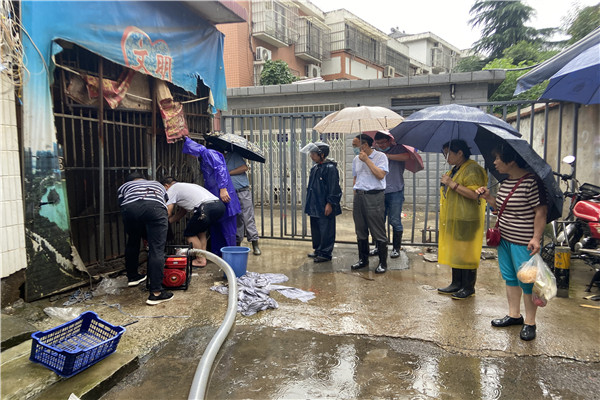 巡查中發現,7月18日上午馨園小區出現內澇現象,水位最高到達1250px。寧國新村社區黨委書記帶領黨員同志第一時間趕往現場查看情況。經檢查出現內澇原因為下水堵塞,于是立馬安排開始清理堵塞物并用水泵抽水,經過八個小時搶險,馨園小區水位終于消退。