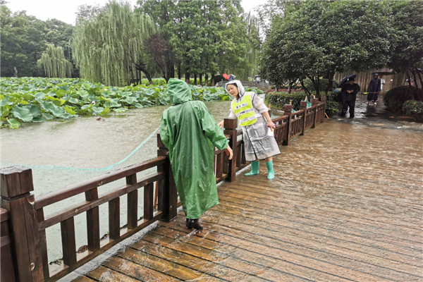 三、支援。社區在統一調度和安排好本轄區的防汛任務同時,亮明黨員身份,同舟共濟奔赴到防汛任務相對嚴峻的兄弟社區以及駐區單位。社區共派出5名同志支援航南社區防汛工作;2名同志助力南淝河堤防穩固;4名同志二人一組參與到轄區包公園的值班中,協助做好游客安全保障工作。