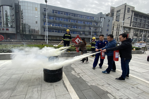 現場包河區消防救援大隊給樓宇企業黨員群眾進行消防救援車輛出水滅火的演示以及車載器材的展示,這是一支養兵千日,用兵千日的社會綜合型滅火救援隊伍,配備的車輛器材也是當前最先進的。消防隊的專業人士現場教授干粉滅火器的滅火方法,樓宇企業黨員、群眾面對模擬火場,按照消防隊指導員演示的滅火方法、步驟和要領,親身體驗了使用滅火器滅火的感受。消防知識問答的互動環節將現場氣氛推向了高潮。