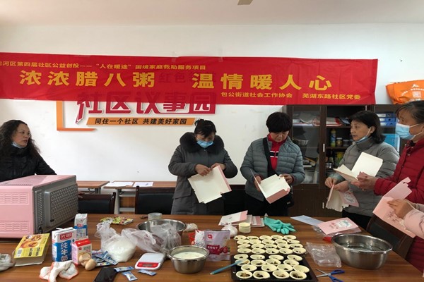 活動當天,黨員志愿者早早地就來到社區開始熬臘八粥,經過幾小時的熬制,一碗碗香甜軟糯、暖意濃濃的臘八粥便新鮮出爐了。黨員志愿者們迅速將臘八粥分裝好,另外還烤好了香噴噴的蛋撻,分組送到包公街道“人在暖涂”服務項目的五位服務對象家中,為他們送去新年的祝福,讓他們足不出戶就能感受到社區的關懷與溫暖。