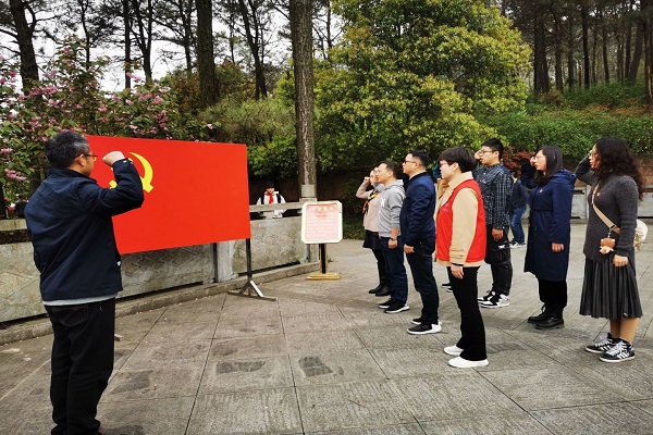 “我志愿加入中國共產黨,擁護黨的綱領,遵守黨的章程……”參加活動的預備黨員們懷著對革命先烈們無比的敬意和無限的哀思,在莊嚴肅穆的革命烈士紀念碑前,面向黨旗,進行了入黨宣誓。