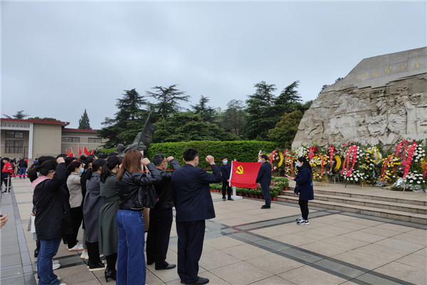 上午9時,祭奠活動開始,黨員們來到烈士紀念碑前,全體肅穆,鞠躬默哀并向烈士敬獻花籃,表達緬懷之情。在社區黨委書記的領誓下,黨員們在紀念碑前肅立,面向黨旗,重溫入黨誓詞。最后,全體黨員來到安徽革命烈士事跡陳列館參觀學習,在講解員的帶領下,大家共同學習了地方黨史。紀念館內一幅幅珍貴的革命照片,一件件斑駁的歷史實物,也使黨員們深刻了解了歷史中安徽土地上英勇犧牲的著名烈士,深受思想洗禮。