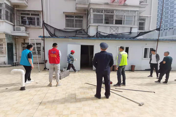 群眾響應,有序拆除。社區黨委副書記靠前指揮,親自部署,轄區物業積極響應,一同上陣,對排查出的違章搭建陽光房進行全面拆除。社區黨員們切實發揮“領頭雁”作用,帶領城管隊員解決拆除過程中的困難和問題,確保拆除工作順利推進。