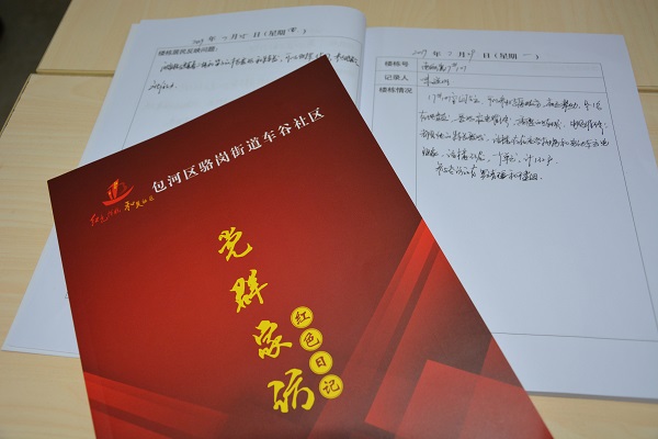 記錄一本紅色日記。社區黨組織專門印制了黨群家訪紅色日記本,小區黨支部、網格員、黨小組長、樓棟長將紅色家訪情況記錄在冊,定期匯總交流,社區分類處理,及時回應解決。紅色日記記錄著黨員群眾的多元訴求,也記錄著黨組織的精細服務,成為黨組織聯系群眾的“一座橋”,打通了服務群眾的“最后一米”。目前,兩個小區支部的紅色日記記載著60余次上門家訪記錄,征集和美小區建議30余條,收集各類問題20多個,已銷號化解10個。