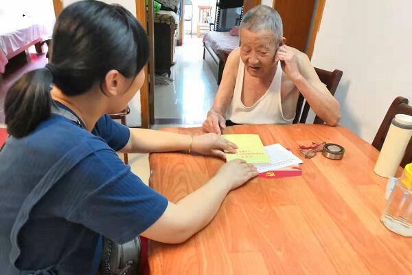 “我1955年加入中國共產(chǎn)黨,到現(xiàn)在有五十多年了,我都還能記得入黨的誓詞。雖然現(xiàn)在年紀大了,但我還想為社區(qū)建設出一份力,盡我所能給大家服務,不能給黨組織拖后腿嘛!”8月21日上午,包河苑社區(qū)老黨員盛澤海對社區(qū)前來家訪的工作人員說道。