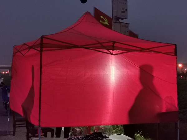 7月17日下午,五頂帳篷悄然在十五里河左岸、南淝河右岸搭起,鮮紅的黨旗在防汛一線高高飄揚。