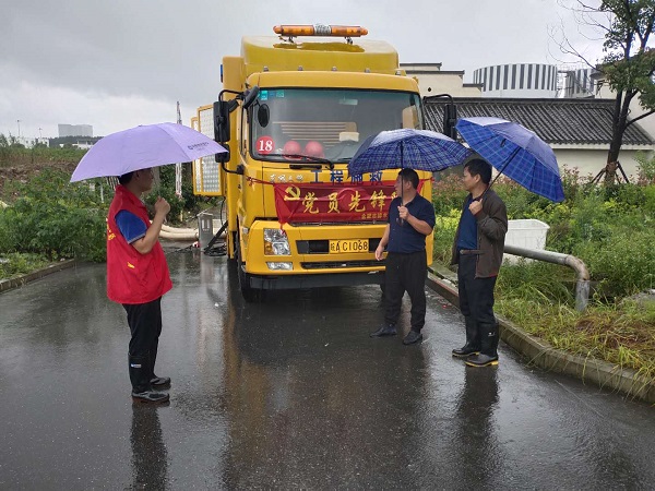 企業組織黨員先鋒工程車進行排水搶險