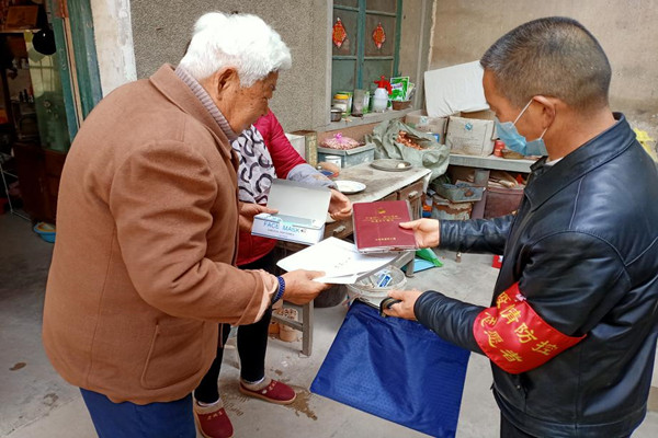 送學上門,“紅色關懷”防疫情。結合疫情防控實際,義城社區工作人員走村入戶將各類防疫知識宣傳冊、黨的十九大精神學習資料送到每個黨員手中,同時為年老體弱、行動不便的老黨員及不識字的特殊黨員免費當起愛心“服務員”、“宣講員”,為他們打掃衛生,平整土地,宣傳講解黨的十九大精神等,把“紅色關懷”做起來。